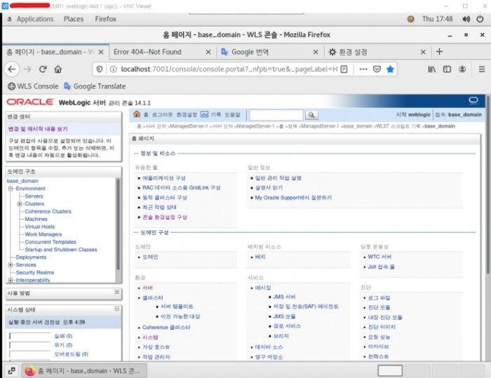9. vnc 뷰어 연결 후 weblogic 콘솔 접속