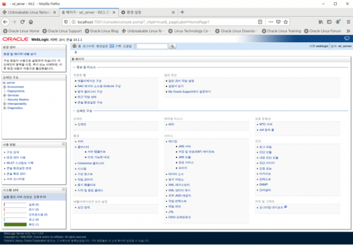 웹로직은 콘솔모드가 특성화 되있다 보니 GUI에서 설치하고 운영 관리하는게 아주 편리합니다.