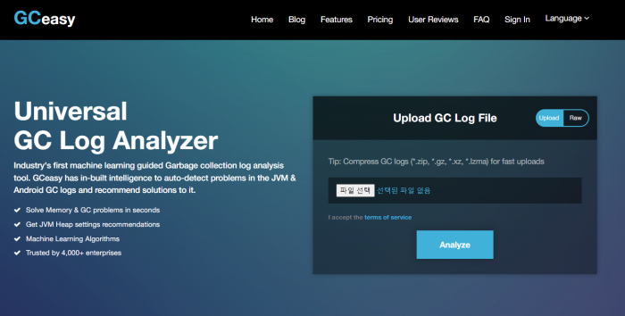GC 분석을 하기 위해서는 여러가지 Tool을 사용했었는데요, 제가 제일 자주 활용하는 것은 MAT도 아닌 GCeasy 입니다.